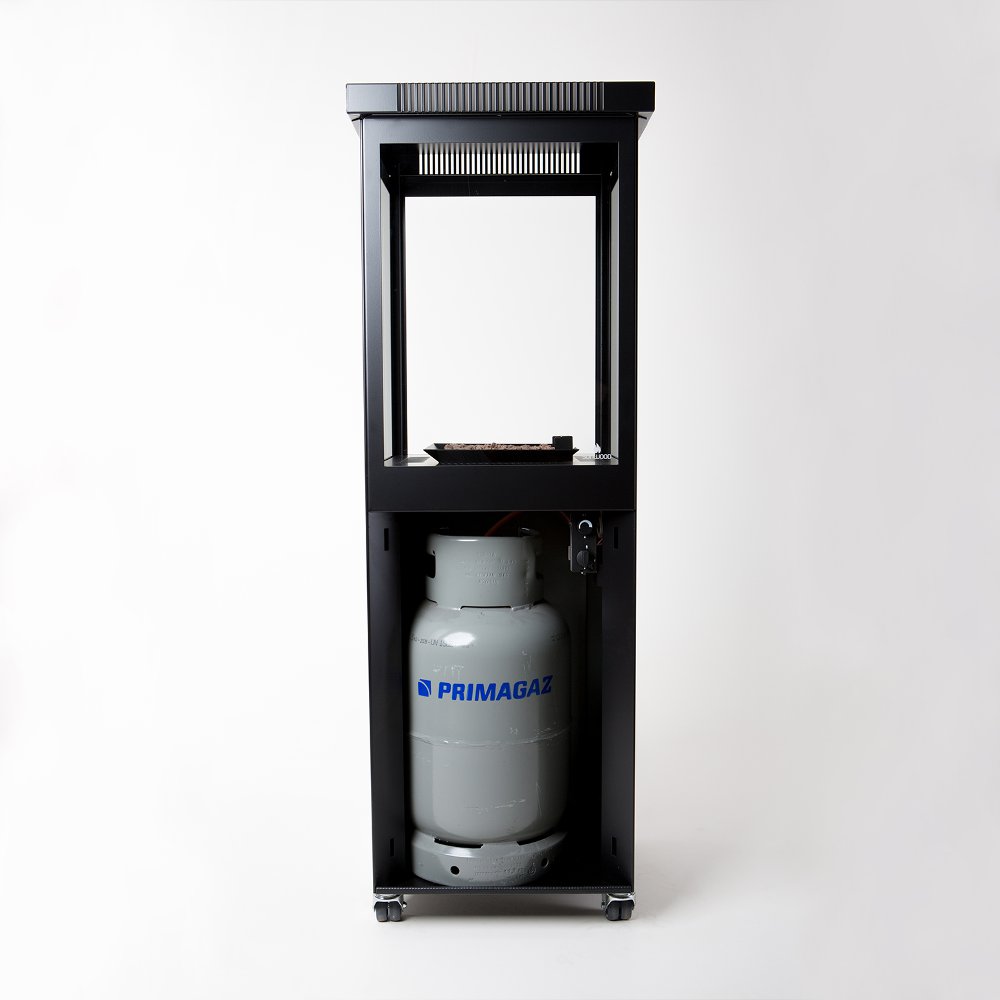 Door de goed uitgedachte en praktische constructie zijn de ruiten eenvoudig los te maken en te reinigen. Het ontwerp zorgt er tevens voor dat kwetsbare onderdelen zijn afgeschermd, zodat deze lang mee gaan. De terrashaard is verrijdbaar en afgewerkt met een weersbestendige poedercoating. De gasfles kan in de haard worden geplaatst. De terrashaard brandt op propaangas, maar is op aanvraag ook op aardgas leverbaar.